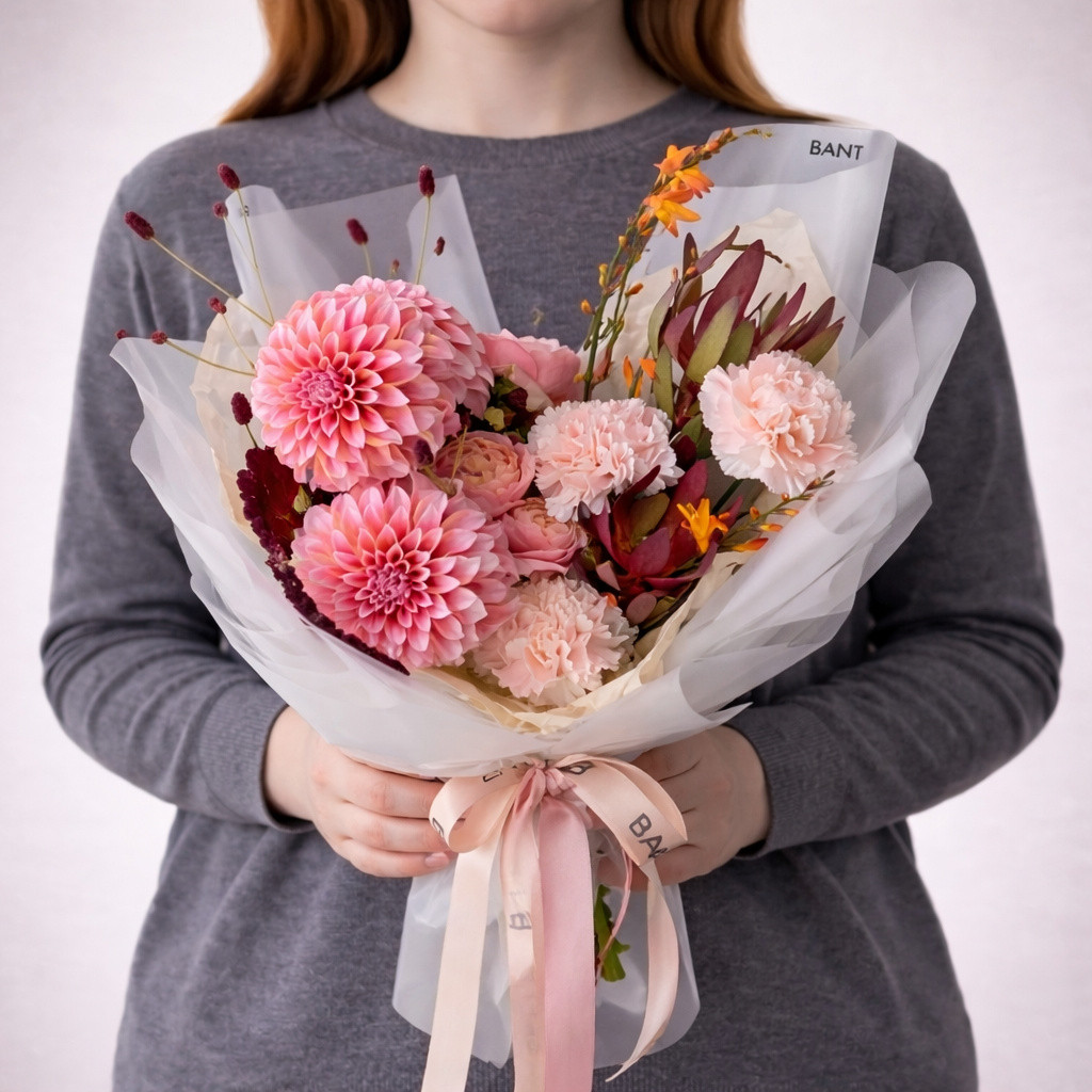 | Состав: | Гвоздики, Георгины, Кустовые розы |