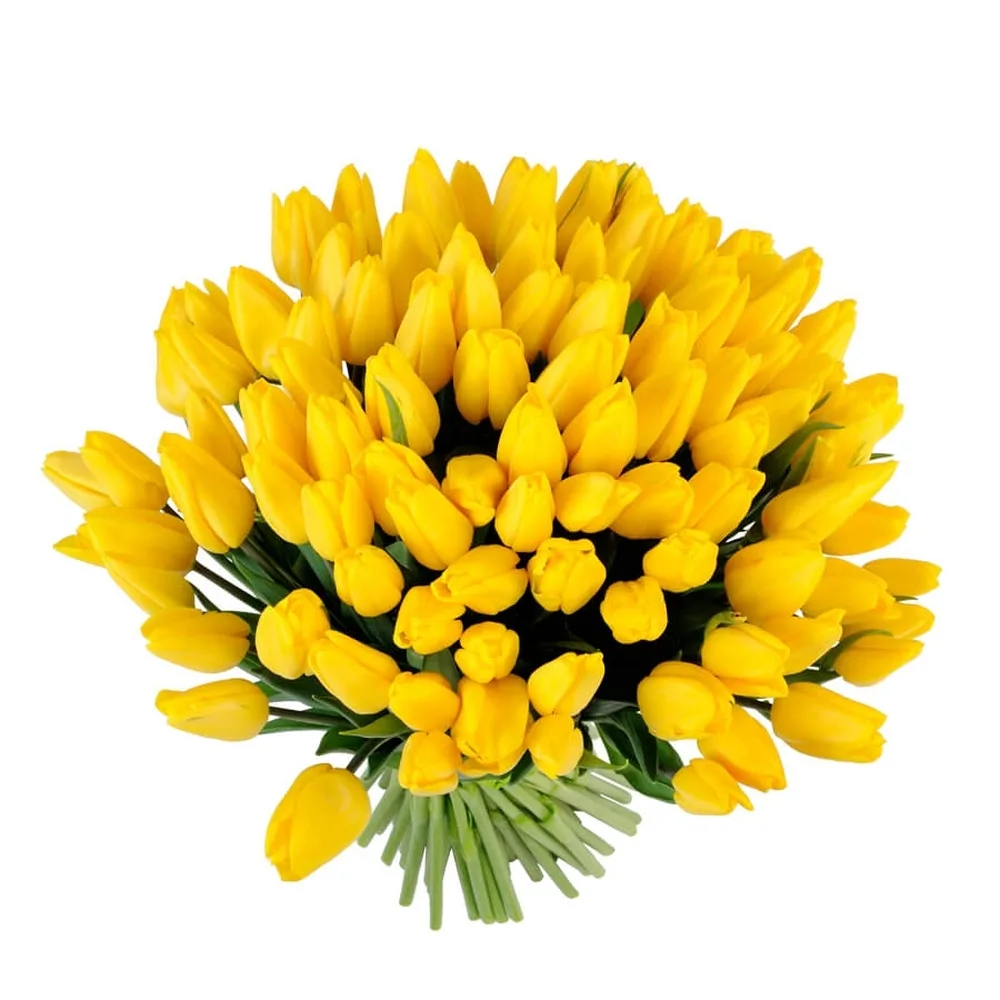 Букет желтых тюльпанов под ленту — 101 штука