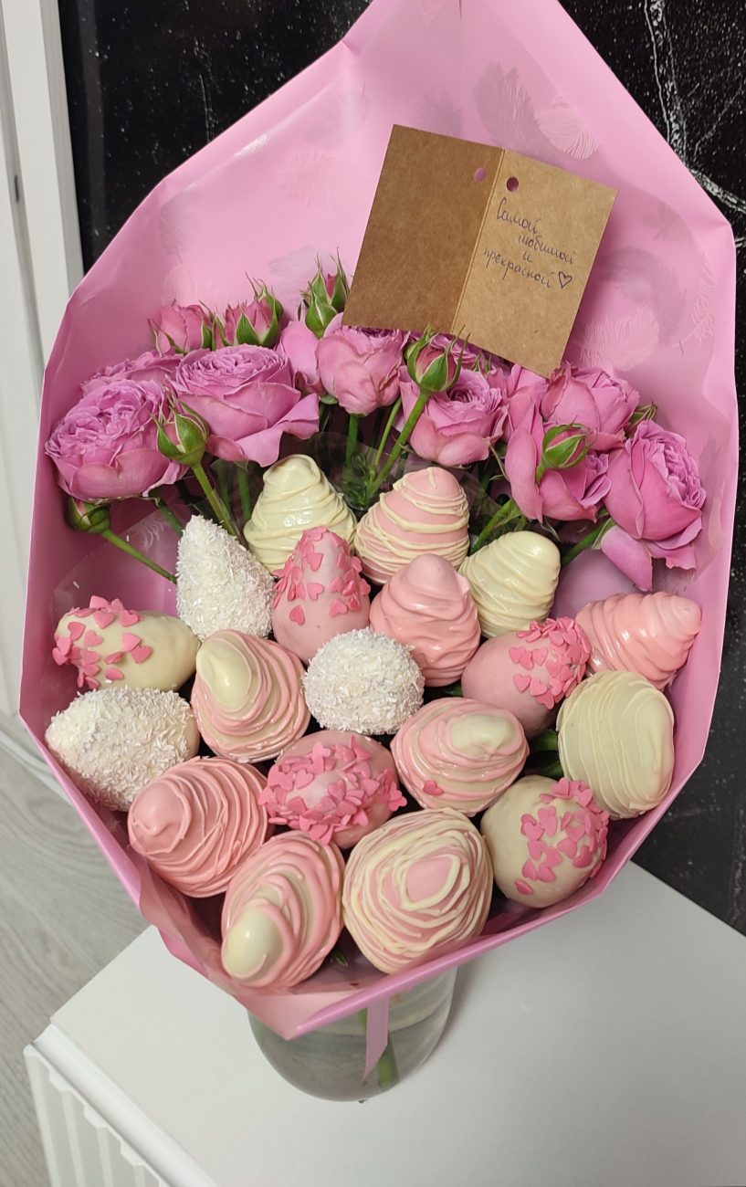 Сестренка в восторге! ???...Оформляла заказ клубничного букета на сайте, мне профессионально помогли с выбором букета для сестренки!