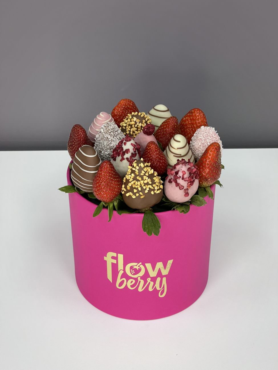 Коробка с клубникой «Чувственность» - букет, который идеально оформлен, что подчеркивает естественную красоту всех бутонов
