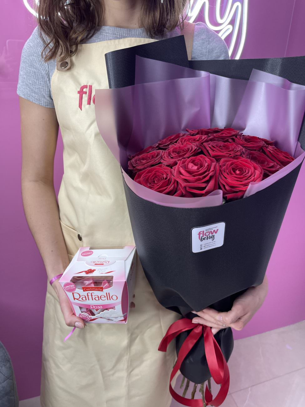 Не тратьте время: купите этот букет в считанные минуты. Розы и коробка рафаэлло ждет вас: добавьте его в корзину, заполните заявку, а затем укажите точный адрес доставки. Следующим шагом свяжитесь с нами или ждите нашего уведомления. За 2–3 часа курьер доставит букет в Донецке, и вышлет сообщение о его выполнении.