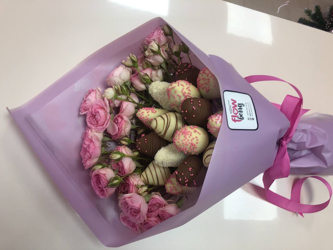 Заказывал доставку привезли вовремя,букет превзошёл все ожидания,клубника была свежая и очень вкусная,так что всем советую)